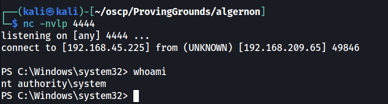 Algernon is an 'Easy' rated machine on Offsec Proving Grounds. It is a Windows machine that is hosting a vulnerable version of SmarterMail. Once exploited, we gain a foothold as NT AUTHORITY/SYSTEM.