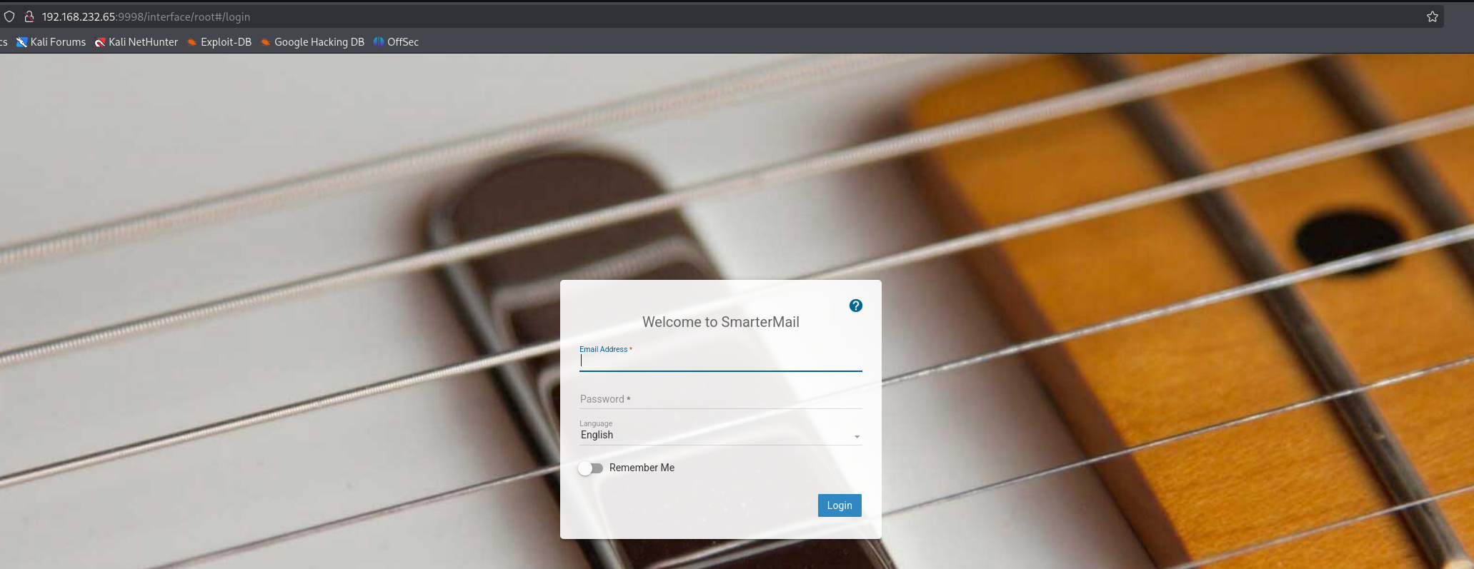 The request forwards us to http://192.168.232.65:9998/interface/root. We also confirm that this is running SmarterMail, but what if we can find what version or build this is?